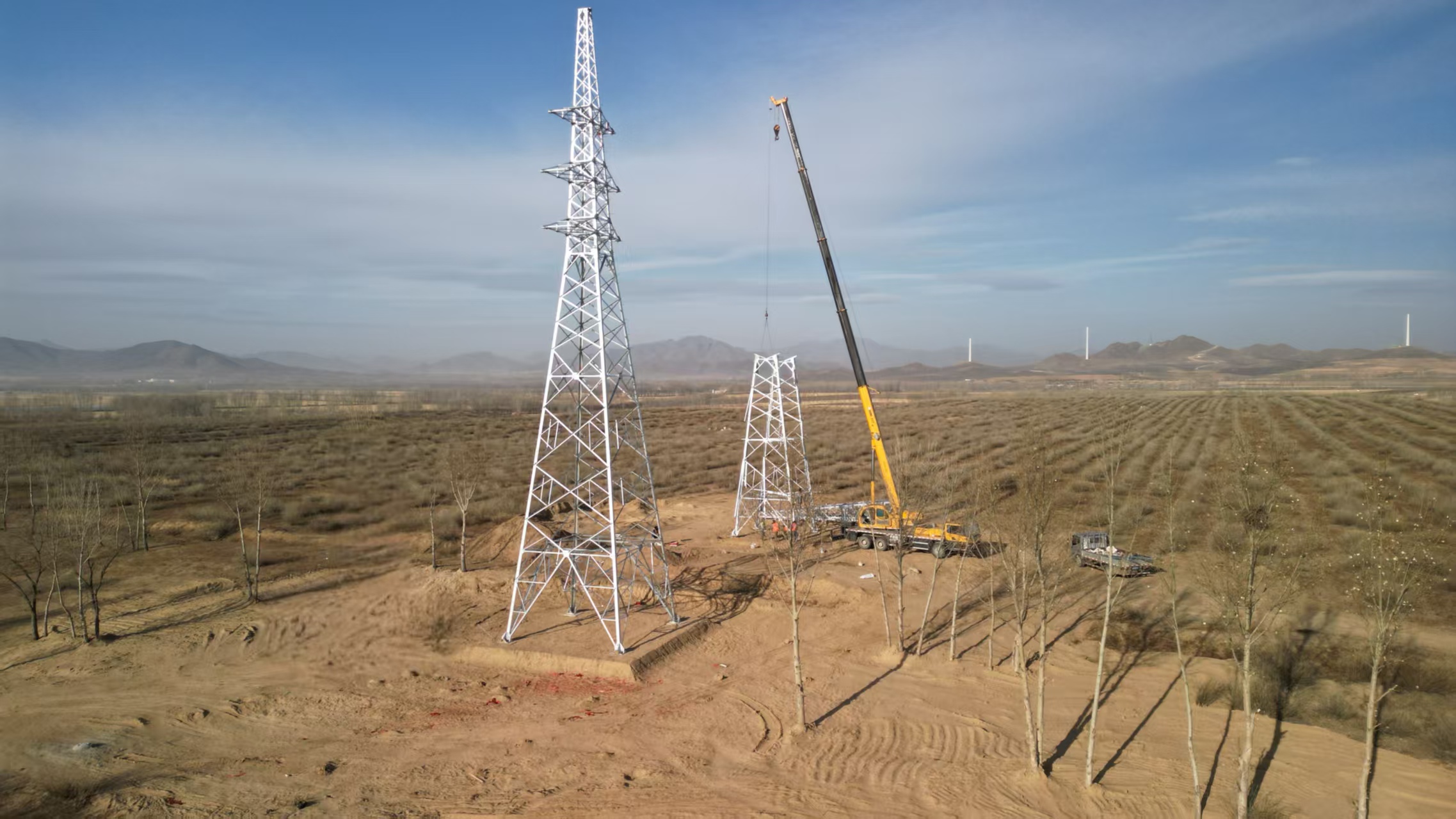 一分公司:内蒙古能源巴林左旗100万千瓦风光储基地项目第一基铁塔吊立完成