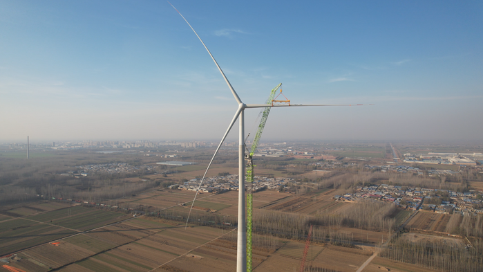 智慧能源:新河县泽冀200兆瓦风电项目整机吊装过半