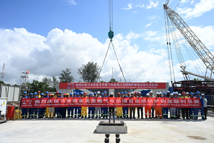 海外事业部:马来西亚美里燃气电站项目余热锅炉钢结构顺利开吊